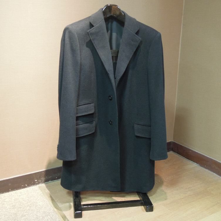 当店で使用している木製スタンドハンガーをお客様のご要望もあり新たに製作いたしました。愛知県内の木工職人さんが天然木を使いハンドメイドで作ったものです。15年前イタリア出張の際ローマに宿泊したホテルの部屋で見つけ、使いやすかったので写真に撮って日本の職人さんにオーダーしてずっと使い続けているものと同形です。シンプルですがスーツ、ジャケット、パンツを家に帰ってさっと掛けられ使いやすい。コートは90cm丈まで掛けることができます。