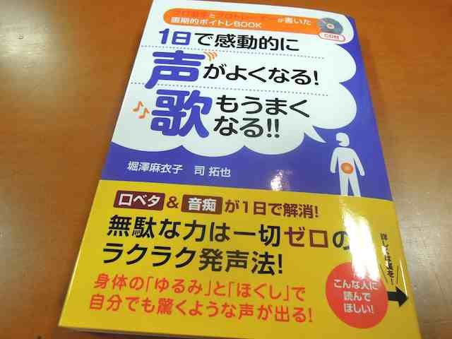 スプリングコートを着て傘をさして栄、丸善に出かけた。本を見ていると「1日で感動的に声がよくなる!歌もうまくなる!!」という本を見つけてへーそんなことあるかいなと著者を見たら堀沢麻衣子とある。この人は名古屋猪子石できた歯科クリニックを開業している北博之君の姪っ子さんである。お父さんも当店のお客さんで堀沢麻衣子さんは美しい声の持ち主なのでジブリ映画の主題歌になりそうだったとも聞いていた。声というのはとても重要である。わたしはこどものころギターがうまいのが一番かっこいいと思っていたがじつは歌がうまいのがかっこいいのだ。丸善でも平積みになっていてとても売れているそうで私もさっそく買った。知り合いの方が活躍しているととても嬉しい。DSCN6439