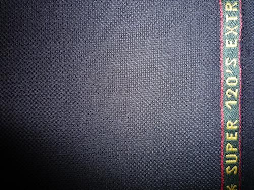 イタリア ロロピアーナ社スーパー120濃紺バスケット織。エル○ス社も採用しているロングセラー素材です。オーダージャケット価格58000円(税込)