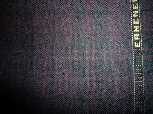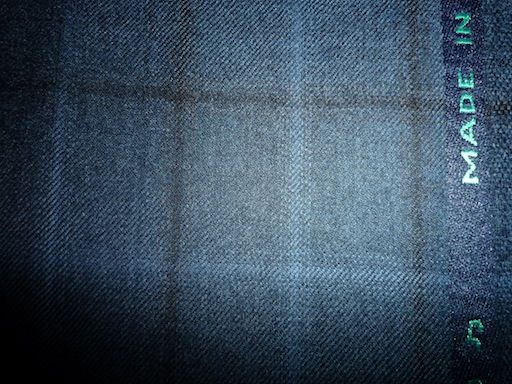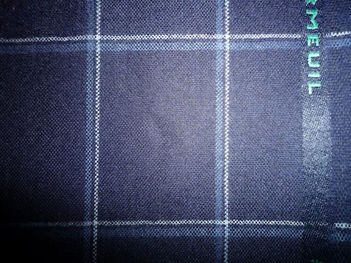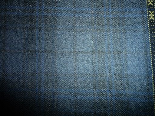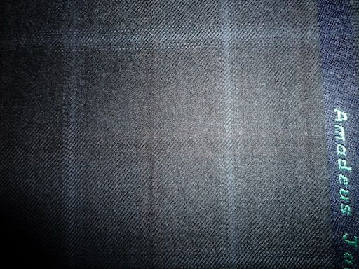 グレー、ブルーの小さい格子。アマデウスシリーズは楽聖モーツアルトにちなんで音符を服地の耳に織り込んでいる。完売(10/30)