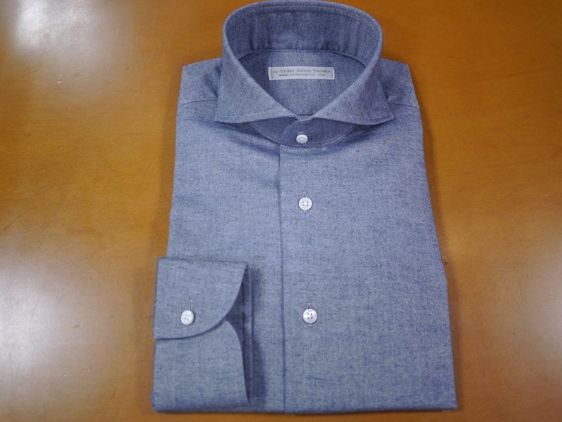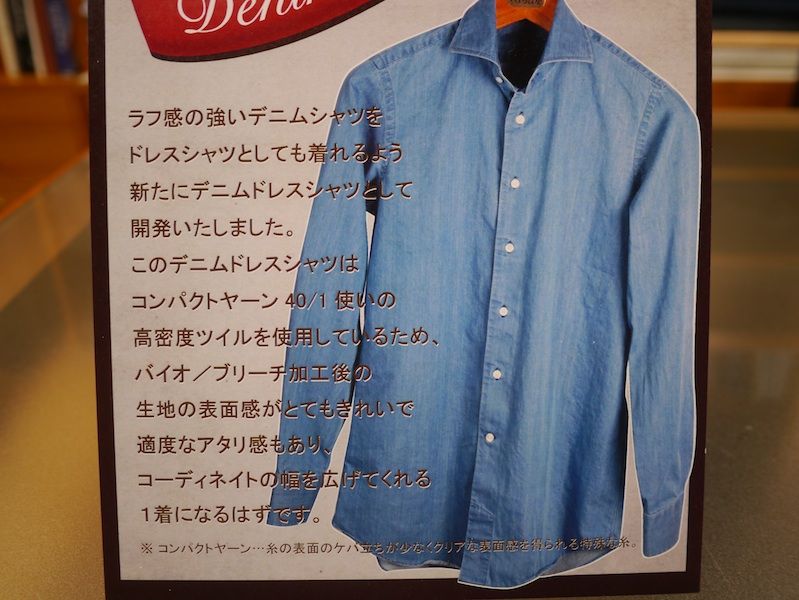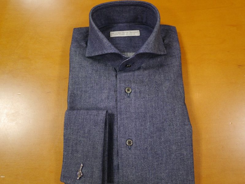 私が仕立てた後、ユーズド感もあるデニムシャツ素材も出た。オーダーシャツ価