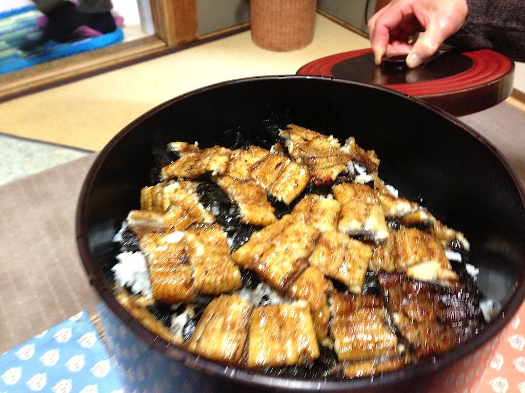 家に帰ると、浜松に住む妻の実家のおかあさんが来ていた。 おみやげにうなぎの白焼きをもってきていただいた。今はうなぎの不漁で値段が高騰しているためここ2年ほどうなぎを食べていなかった。おかあさんからうなぎをもらうと家庭でタレを付けて焼いてご飯を炊いてひつまぶしをこしらえるのが当家のやりかた。これで夕食にはうなぎにありつける。友人のシモちゃんにもらったワケギを刻んでたっぷり乗せていただいた。ああうれしい、久しぶりのうなぎ。