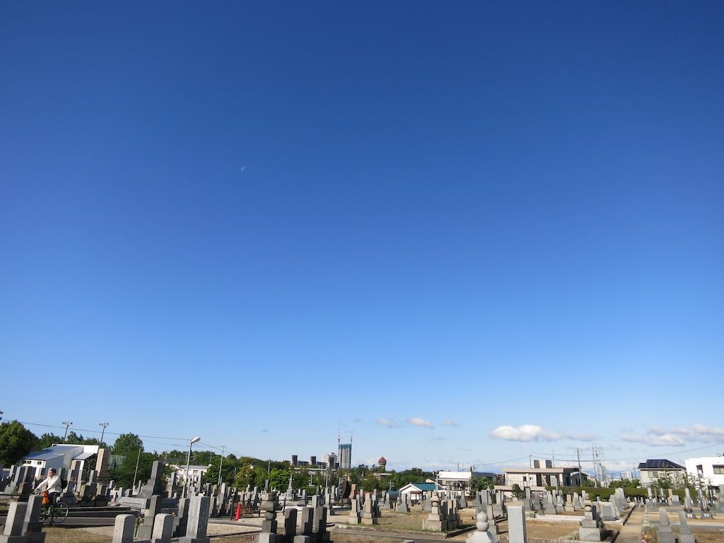 今、朝の空気はまだ冷たく長袖のポロシャツとウインドブレーカを着込んでも肌寒い中、月初めの墓参に行く。一日前に近所に住む弟が来てくれてサツキがお供えしてくれたので水だけを換えてお線香を上げただけだった。五月の朝の空はただ、ただひたすらに青く、さきごろ紫綬褒章をもらった松任谷由実の「悲しいほどお天気」という言葉がぽっと頭に浮かんだ。