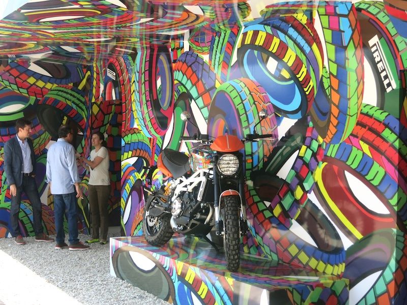 これはピレリのブース、タイアだけではなく近年アパレルに進出。