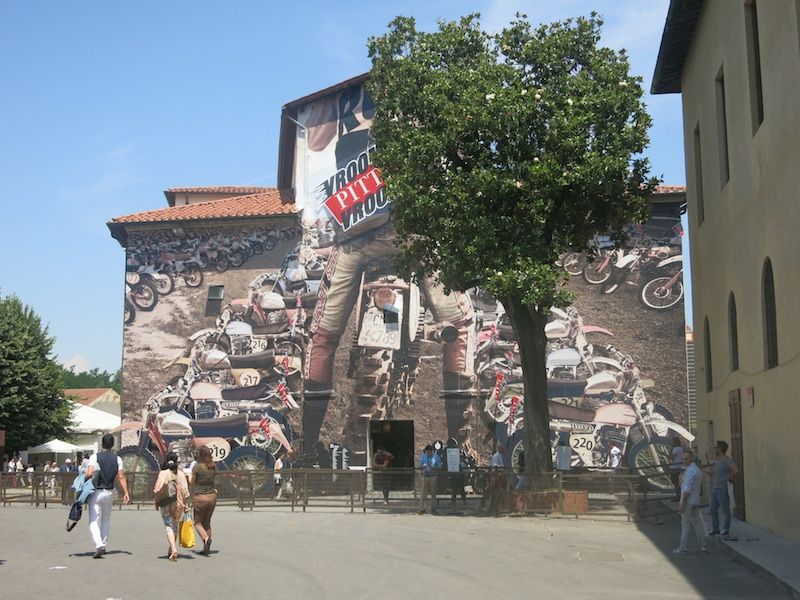 ピッティインマージネウォモの入り口を入ってすぐのパピリオン。これがイタリアが誇るラッピング巨大印刷。修理中の教会など有名建築物の外装をこれが覆う場合もある。