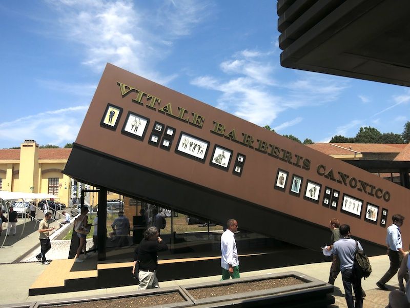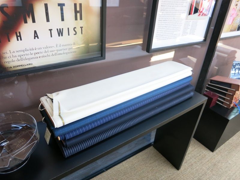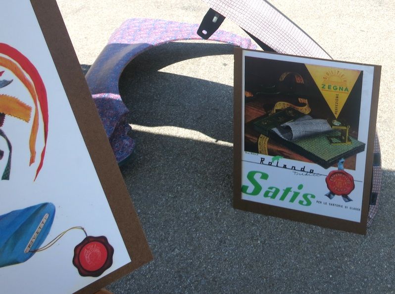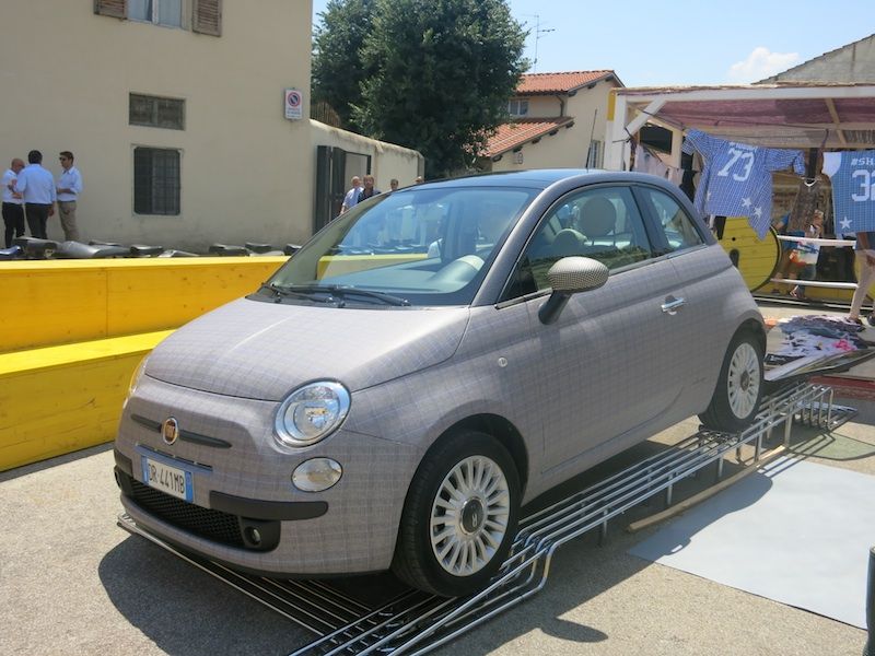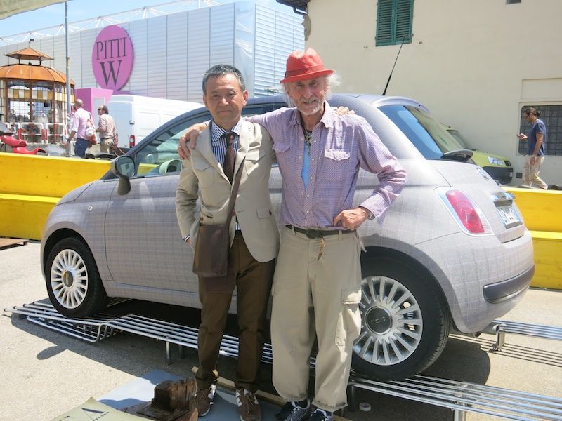 面白かったのはFIAT500を服地柄でラッピングする展示。イタリアでもこのクルマはおしゃれだと思われていてこれをクラシカルにエルメネジルドゼニア柄にコーティングするのはクラシック志向のピッティウォモならではの発想だと感心した。おしゃれなおじさまがご主人で楽しくお話しさせていただいた。