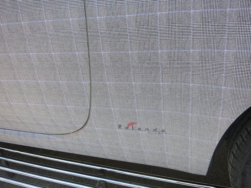 ボディはグレンチェックにブルーのオーバープレイド、屋根はチョークストライプのフランネル調。