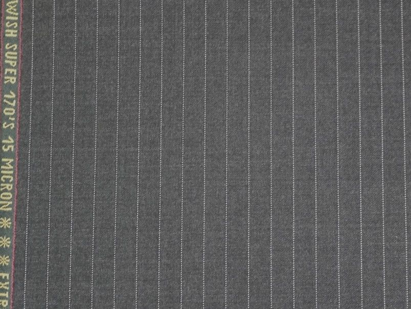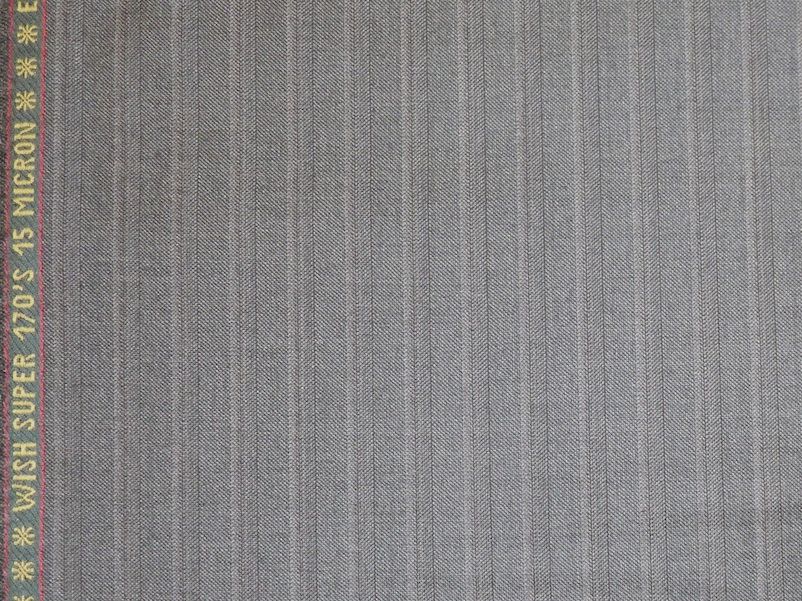 ロロピアーナ素材同志で比較すると3シーズン素材のタスマニアン150は1mあたり250gでウィッシュ170sはそれよりも20g多い270gです。細番手羊毛は原価が高く、少ない重量のほうがコストが下がりますがあえて20g増やす事で厚みとしっかり感をだしています。ロロピアーナウィッシュスーパー170`sは15ミクロンの原毛を100%使用し74番手の糸にして織り上げています。これに対してタスマニアン150`sは96番手です。本来番手が高い方が品質がいいはずですが番手をあえて落としているのは次の意図があります。1.ドライ過ぎずふんわりした手触りを出す。2.耐久性を向上させる。3.縫製をしやすくして美しいスーツにするため。