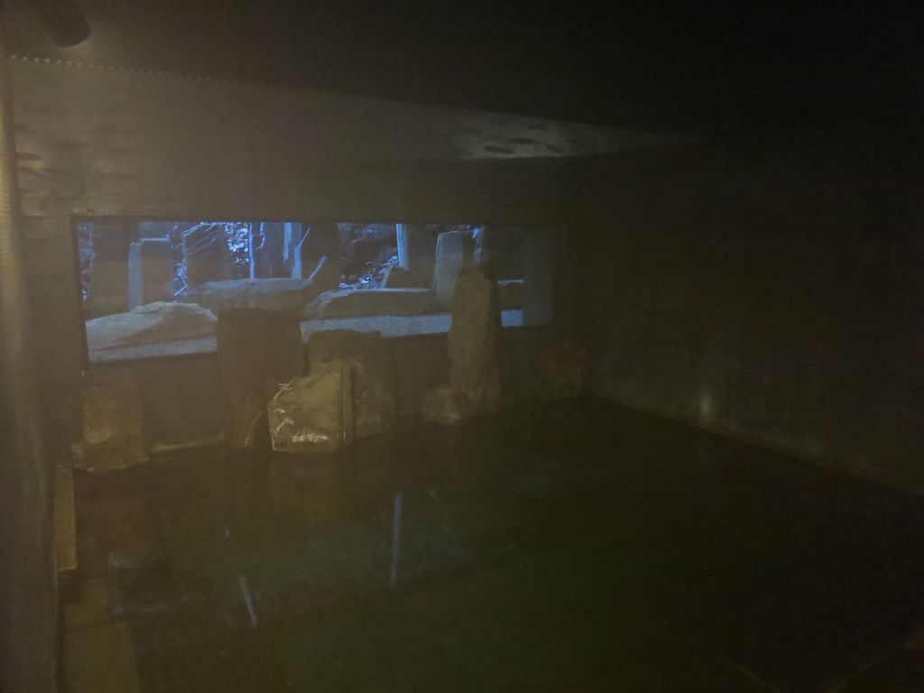 烏の湯 熱い浴槽。庭の漆器だけがこの風呂の中で彩りが有るもの。