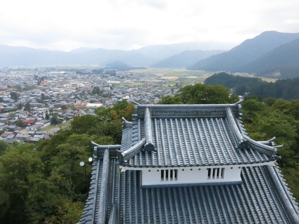 大野の街の中心に小高い丘がありその上に金森長近が創建した大野城が建っている。江戸から明治に変わった世の中で明治6年の廃城令によって古い城を愚かにも壊してしまったがいまコンクリートで再建された城がのこる。山の麓に神社が有り、その脇が城へ登り口で歩く事20分で頂上の天守閣に着く。お城のいらかのむこうに日本の美しい景色が広がる。ああこの国に生まれてよかった。