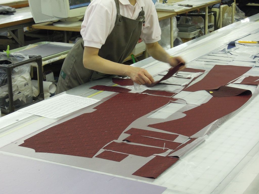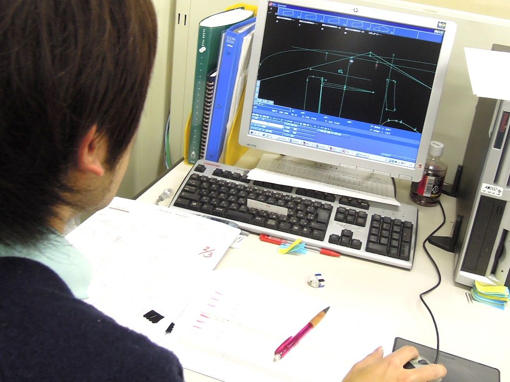 縫製工場ではCADでひとつひとつ正確にお客様ごとの補正を入れながら裁断する。 これにより熟練裁断士が裁断した以上の精度で裁断する事が可能になった。