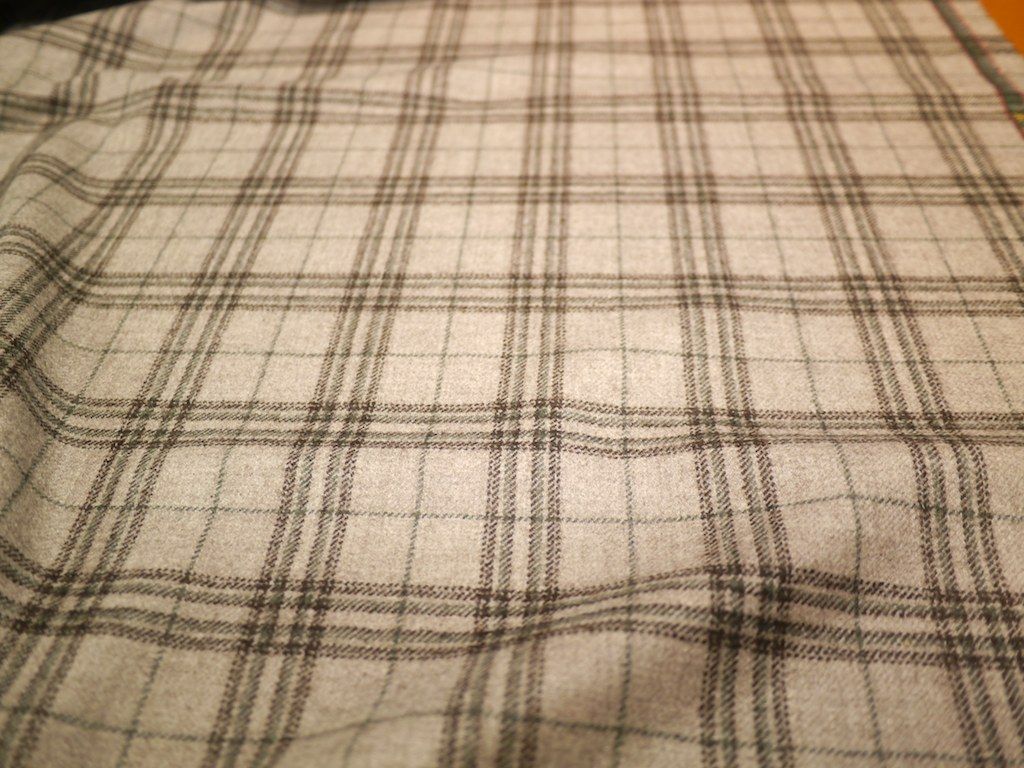 イタリア、英国から秋冬の入荷が続いて8月29日(金)には秋冬のオーダーが開始できる見通しになった。入って来た素材をながめながらどんな秋になるかちょっと楽しみになってくる。イタリアロロピアーナ社の今年のコレクションから素敵なチェックのジャケットを数多く選んだ。ご存知の方も有ると思うがロロピアーナ社はエルメネジルドゼニア社など高級服地メーカー他社と比べ原毛から服地までの一貫生産の工場の規模が格段に大きく、紡績つまり糸作りの側面では生産されている糸の種類が多い。だから色、テイストのバラエティ豊富な種類のジャケット素材を作ることができる。ロロピアーナの作るチェックには「夢」がある。どんなジャケットになるだろう、どんなパンツに合わせるのがいいのかな、どんな場面で着るのだろうと想像がふくらむ。決して派手ではないがラグジュアリーを理解したおしゃれ感があるのだ。