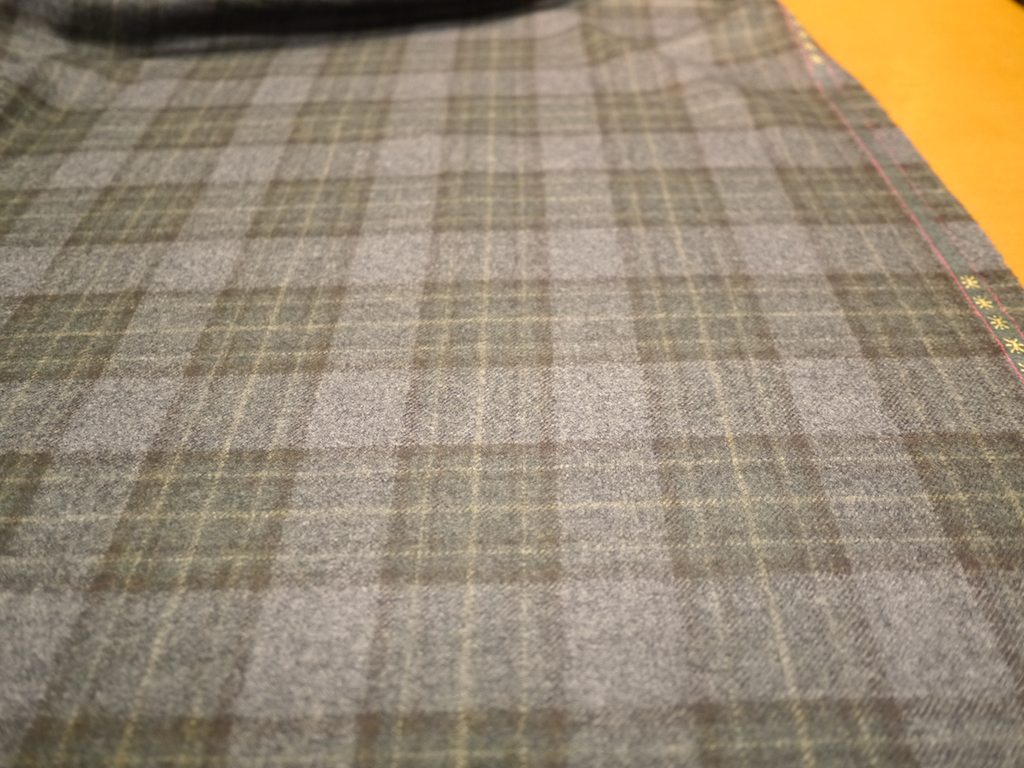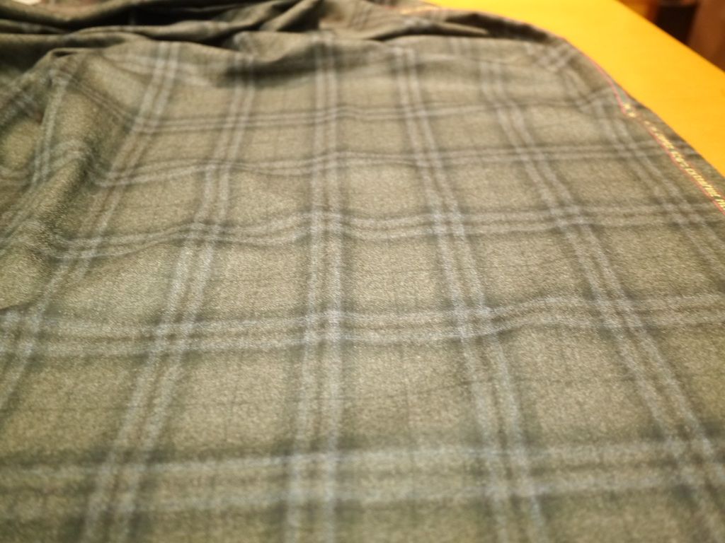 グリーン系のグレーに濃紺とブラウンの小さなチェック 完売
