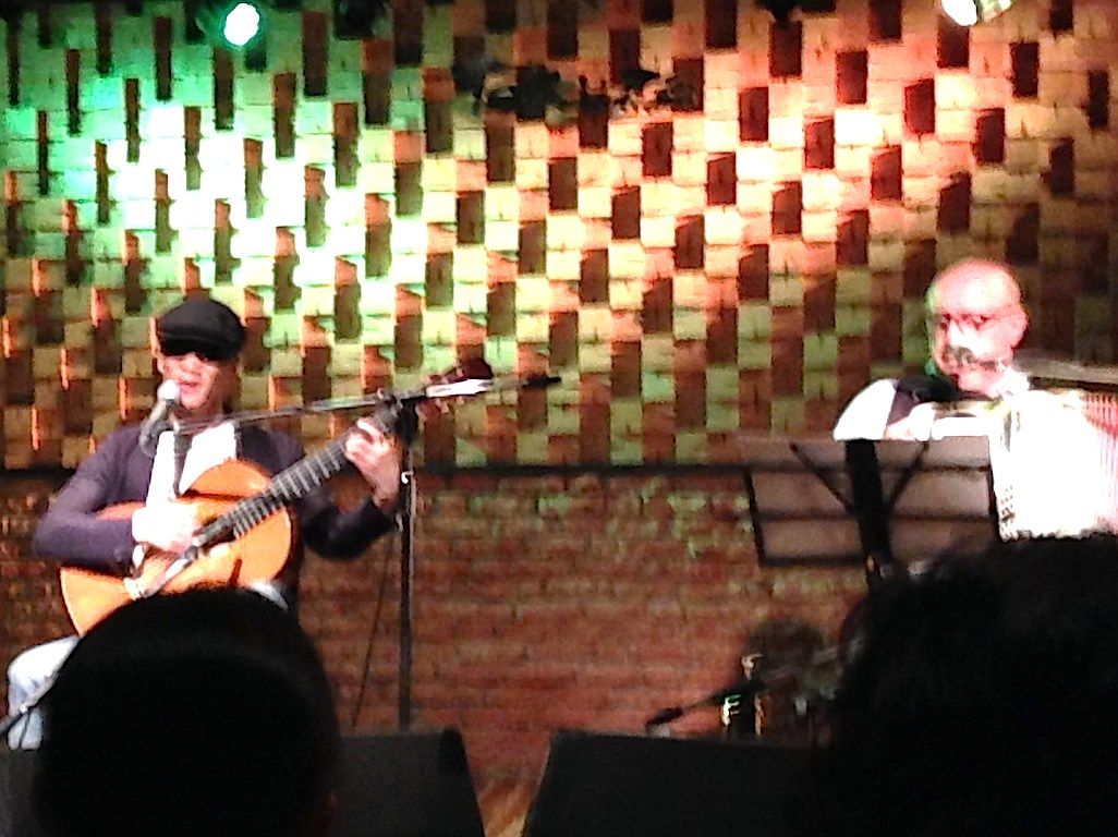 得三はホールの形と木の背景がいいのか音が良い。 特に少ないユニットの場合それを実感する。今回はアコーディオン、フリューゲルホーン、ケーナなどを巧みに操るパトリック・ヌジェとの二人のユニット。絶対いいはずと確信していた。7時半開演といっても結局8時開演になるミュージシャンが多い中、律儀にも予定の7時半きっちりにステージに現れ、演奏は有名なシャンソン「回転木馬」から始まる。シャンソンは母の世代の音楽と決めつけ避けて来たが、ドラマ仕立ての詩が人生の機微を謳うパリの音をこのユニットの演奏で聞くとずっと前から好きだったかのように思えるのは二人の声のハーモニーがなせる技かもしれない。長谷川きよしの明瞭で粒立ちのきわだった歌声のシャンソンから一幕ずつの芝居でも見ているようなヴィジュアルイメージが湧いて来るのが不思議。きっと何万回歌っている「別れのサンバ」「黒の舟歌」「灰色の瞳」などのヒット曲も歌詞のひとことずつ、母音、子音を丁寧に歌い、バックのアコーディオンのせいもあり新鮮な響きで今の時代になっても生きる歌の意味が伝わる。静かな感動の夜でした。