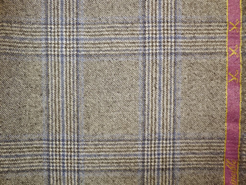 表面は起毛感、グレンチェック系、青のオーバープレイド