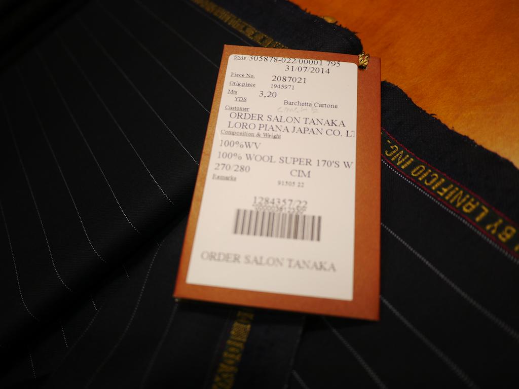 このエチケットが当店の素材がロロピアーナ正規日本現地法人ロロピアーナジャパンを通して買い付けた素材だという事を証明する。