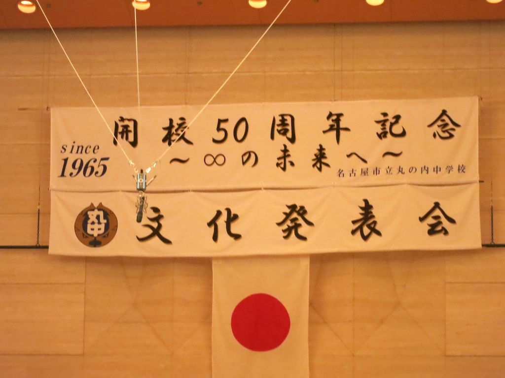 きのうは昨年までPTA会長をしていた丸の内中学の開学50周年式典と記念懇親会が開かれた。伏見の電気文化会館で式典と記念演奏会があってのぞいてきた。まるでシルクのようなスムーズさで式典が進む。緻密に周到に準備をしているのが分ってそれを仕切っている旧知のM先生のご苦労がわかった。一年から三年までの生徒達の合唱を聞きそのハーモニーの美しさにしばし感動。が丸の内中学はわたしが名城小学校一年のときに開校してその時の記念で樹脂でできた水色のコップをいただいたのを覚えている。わたしはこの学校には残念ながら進まなかったが、昨年PTAの会長をやらせていただき貴重な経験ができたことにほんとうに感謝している。 会長時代に垣間みた、真摯に先生と生徒が向き合い高め合う丸の内中学の教育は素晴らしいと思った。そしてこの学校のヒストリーに名前を刻む事が出来たことはわたしのひそかな誇りである。