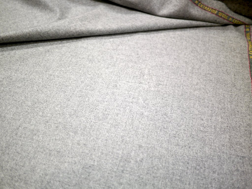 特にブラウン系のジャケットや革靴ならこの色と相性が良い。白く織物を作って後から色で染める後染めではなく、複数色で染めた原毛で作った糸で織り上げたメランジェで高級感と暖かい味わいがあります。