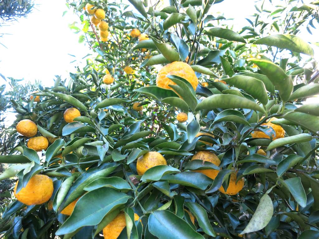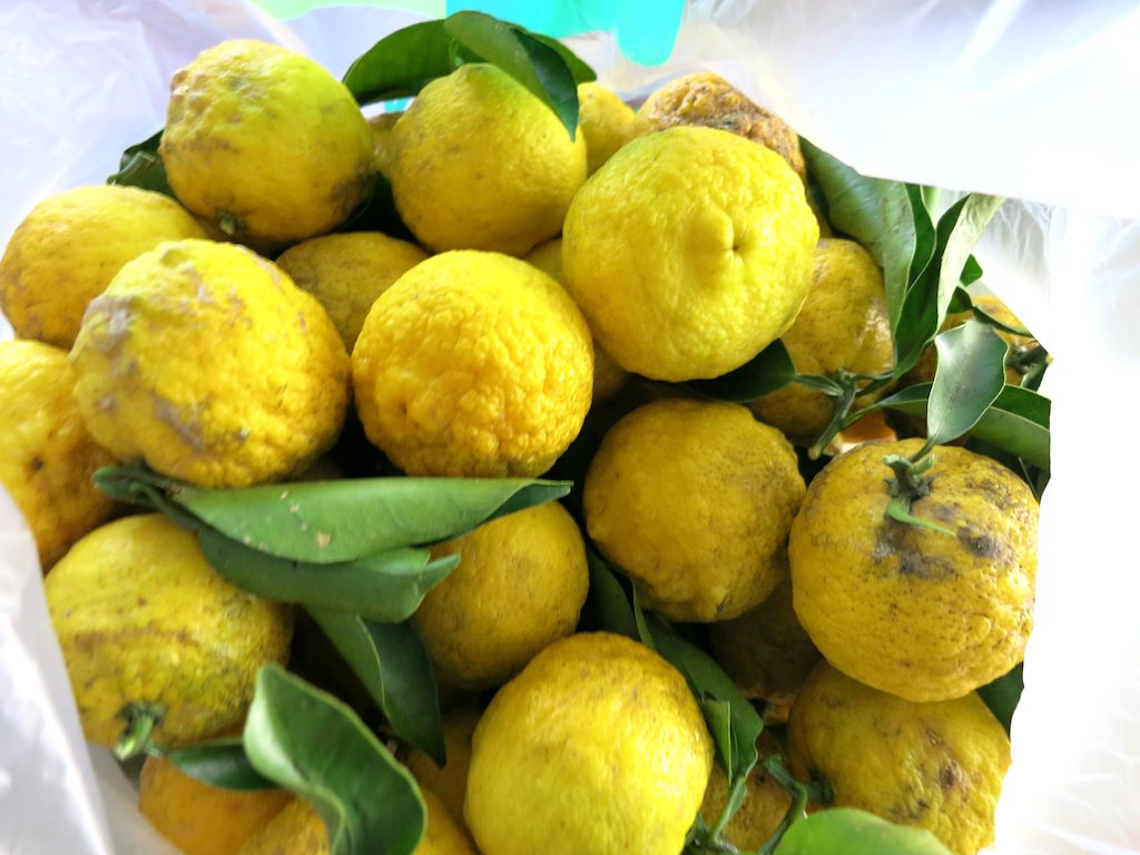 妻の実家はもともと三ヶ日のミカン農家の出身。以前は家の敷地にミカンの木もあったのだが今は無い。 9年前になくなった義父がまだ元気な頃、植木屋で苗を買って来て庭に柚子の木を植えた。それがけっこうな大きさになりたわわに実がなってきた。そこでぼくが木に脚立をかけて登って収穫することとなった。脚立を木のそばに持って行こうとすると帽子をかぶって軍手をはめないと柚子の枝にはバラのようなとげがでているのでけがするよと注意された。街暮らしのぼくはそういう知識がまったくない。だからこういうことをやらせてもらうと珍しくてわくわくする。枝をひっぱってたわわになった柚子を植木ばさみで切って下に落として後で拾い集める。ポリバケツ2杯分山盛りたっぷり収穫できた。自然にまかせていたので売っているものとは違って小さくて色も悪いが、消毒もせずそのまま育った実だから手をかけたものと違ったいわばワイルドな味わいもある。こんな沢山の柚子はどうやって食べようか、表面を削って薬味にする、実を絞ってポン酢にする、絞った後を砂糖をからませ煮てママレードにする。そして袋に入れてお風呂に浮かべ柚子風呂にする。柚子は冬の日本の喜びがつまっている。広島の親戚に作り方を電話で教授してもらい家に帰ってポン酢造り、マーマレード作りを楽しんだ。出来たポン酢はとりあえず一週間寝かせて味を見てみたい。