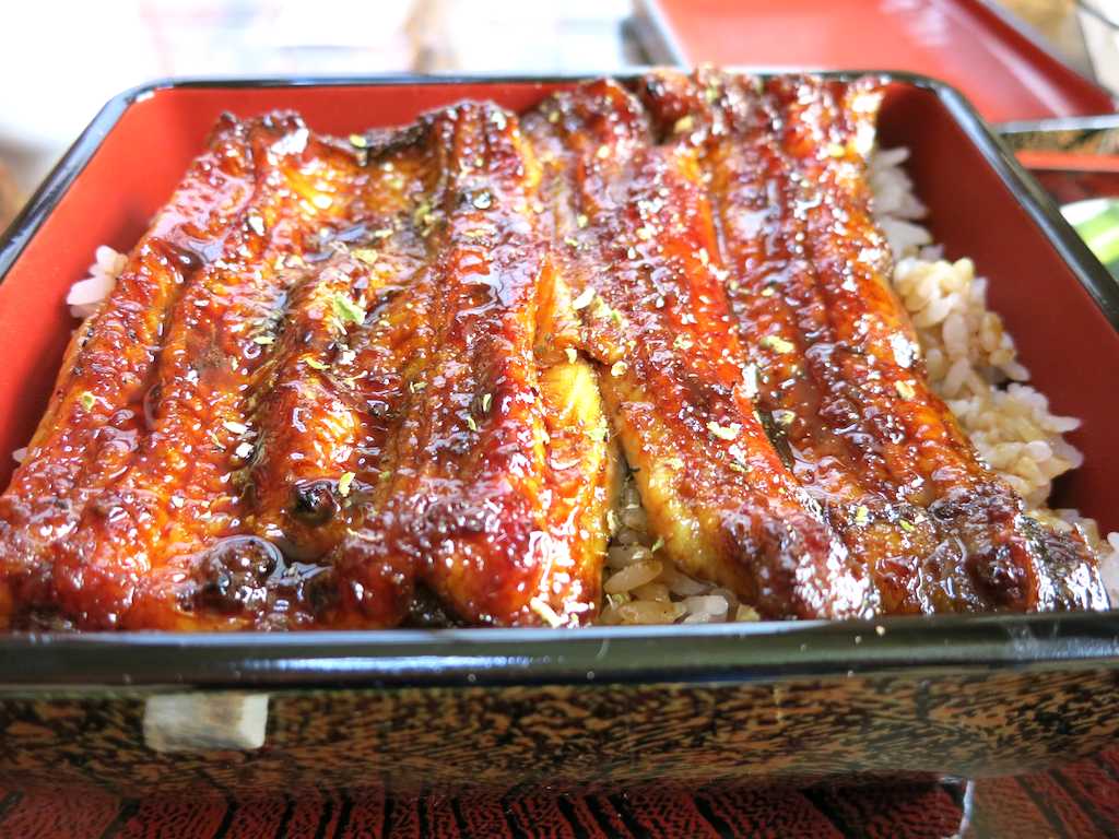金指 コジマヤのうな重。紀州の実山椒をミルで削ってかけると香りがふわっと立つ。
