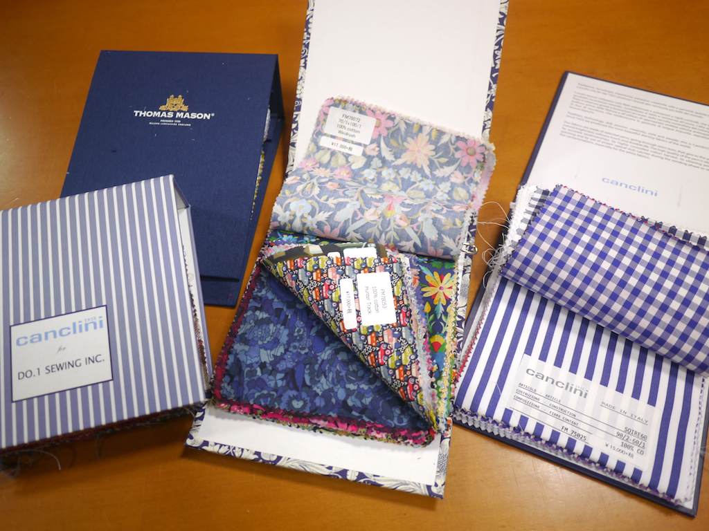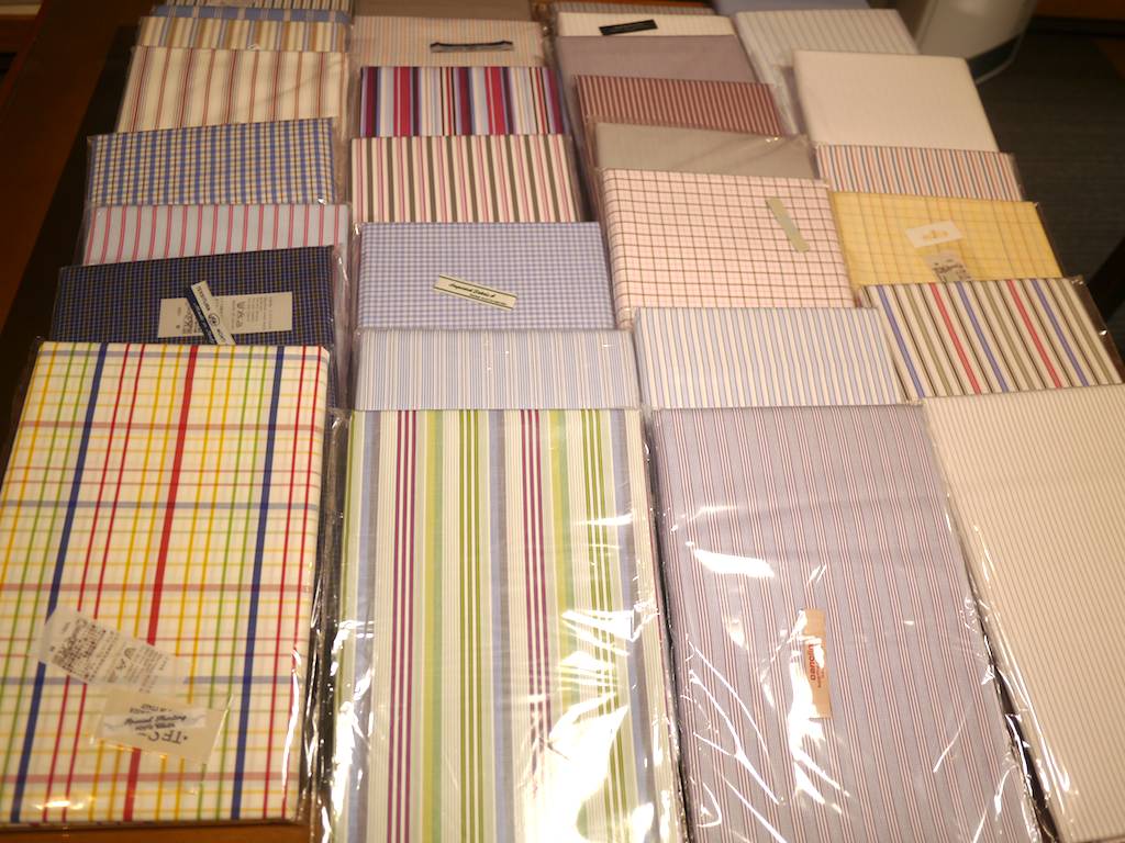 いま当店に現物のインポート素材が入荷しています。メーカーはカンクリーニ、モンティ、アルビニなど有名シャツ素材メーカーばかりです。