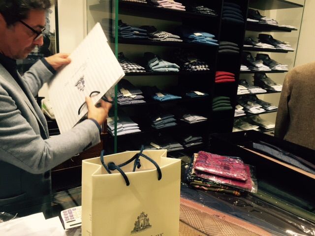 その後アットリー二さんのお店にも表敬訪問したりフィナモレでステキなチーフを選んだり、エディモネッティさんでナポリ好みを探したりしていたら夜も更けて、お腹もすいてきてナポリ名物の海の幸が食べたくなってきた。