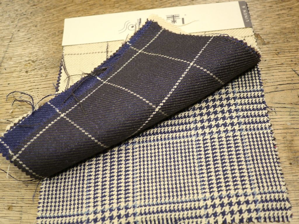 linen6 しっかりした1mあたり430gのリネン1000%、ウインドペン、グレンチェック