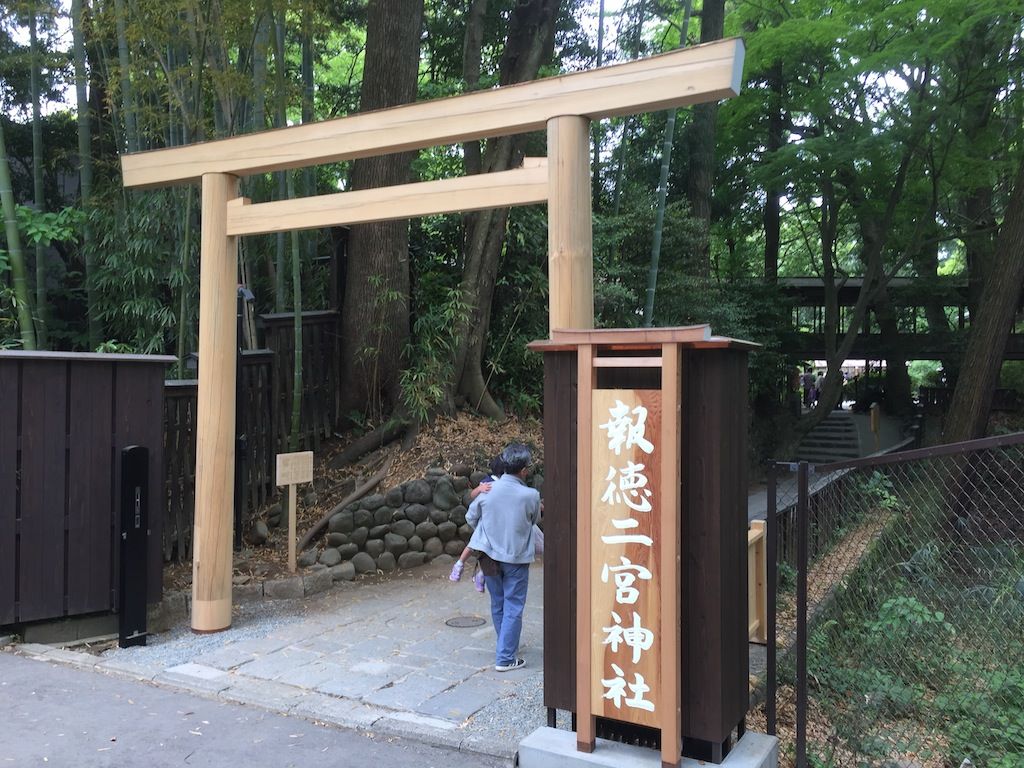 報徳二宮神社の新しい鳥居はご遷宮で出た旧材が使われている。