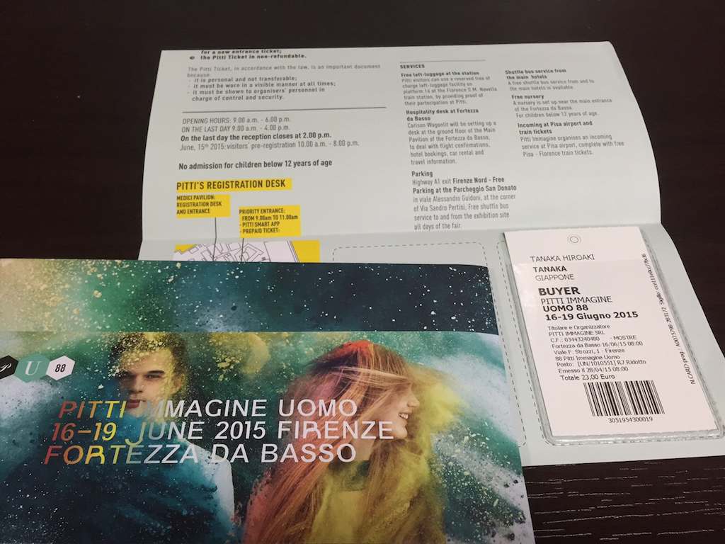 名前はあえて書かないが有名メンズファッション雑誌が出したスナップ集のムックが人気を博している。毎日のコーディネイトの参考になるが、だいたいのスナップがイタリア・フィレンツェで開催されているピッティイマジネウォモで一年前の6月に撮影したものとなっている。去年ぼくがこの目で見たものが「お初でニュースないまどきイタリアオヤジ2015春夏」と紹介されるとちょいと違和感もあるのが正直なところ。ただそういうことが判ってしまうのも毎年ピッティイマジネウォモに出かけているからこそで幸せだと思わなければいけないだろう。今年もピッティウォモの事務局から入場チケットが送られて来た。イタリアは郵便事情が悪いと言われているがエントリーした後いままで届かなかった事は一度もない。たとえばたびたび電車が遅れるなどというイタリア人はいい加減というコンテクストで語られるストーリーが多いが、イタリア人たちの名誉のために言うと実際にはそんなことはあまりなくユーロスターは定時に出発するのが常。現実を知らずにイメージだけで語る事は慎まなければいけない好例かもしれない。
