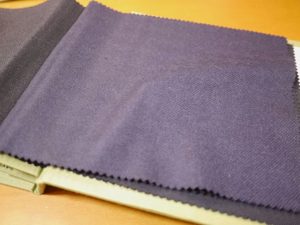 買い付けたもう一種類。濃紺に見えるがハウンドトウースの織り柄が入っている個性的な素材。