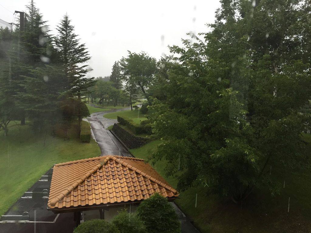 一日明けて16日が主目的の北の杜カントリークラブでゴルフ。でもあいにく台風来襲でずっと雨。だんだん雨が強くなる気配に全員不安げ。名古屋までの帰路も危ぶまれたため泣く泣くラウンドはキャンセルすることにした。北の杜カントリークラブの一番から眺める緑のゴルフコースの景色は素晴らしく美しく誰でも一度はラウンドしてみたいと思う。 たぶんいつものゴルフ仲間ノダとだったら激しい雨のなかでも回ってしまうだろう。しかし台風の風雨がどうなるかわからず組合員を命を危険に晒すわけにはいけない。ゴルフはまた来れば良いと大人の判断をくだすに至った。後ろ髪を引かれる気持ちで午前9時半にはコースをあとにした。帰り道、瑞浪インターでおりて「あきん亭」のラーメンをみんなで食べて家路に着いた。