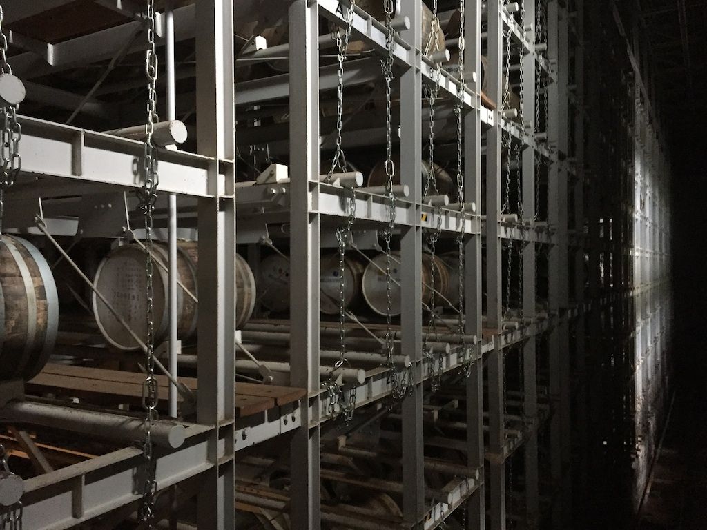 白州工場の貯蔵庫、ウイスキー人気で原酒が不足気味とか。