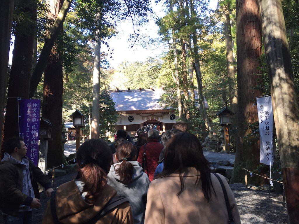 建国記念日なのか神殿の前は長い行列が。椿大神社
