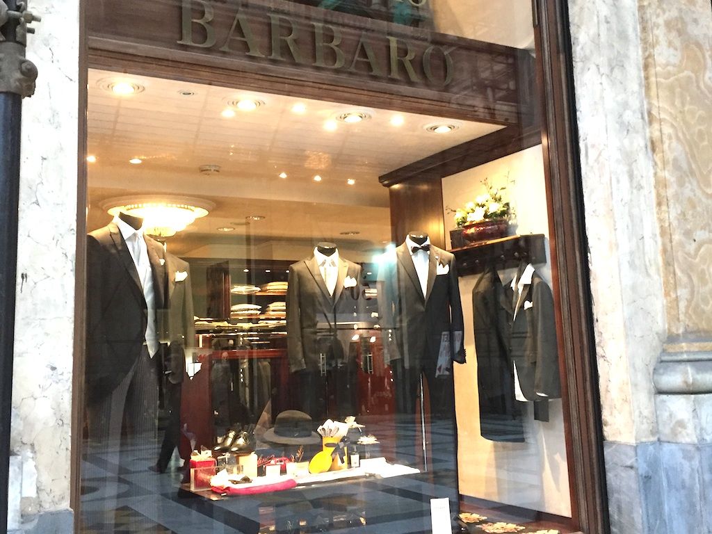 イタリア、ヨーロッパで見かけるメンズショップのショーウインドウにはその店のおすすめアイテムが美しく並んでいます。そこで見られるのはヨーロッパの人たちの考える「クラシックスタイル=正統なスタイル」。たとえばシャツのカラーのシェイプなどは日本のデパートにあるような「レギュラー」でなく日本の「ワイドスプレッド」がヨーロッパでは間違いなく「レギュラー」でありこれこそが「クラシックスタイル」です。見分け方は簡単で、シャツの衿先がラペルの下に隠れるものがその「クラシックスタイル」。当店お客様が本物のクラシックスタイルをお選びいただけるようそんなシャツをおすすめしています。2プライススーツショップで見かける白いシャツに黒や濃紺の黒いボタンが付いているシャツや、色のステッチをカラーにあしらったシャツはクールビズが出始めの10年前に流行ったもはや時代遅れで、当店ではおすすめしていません。