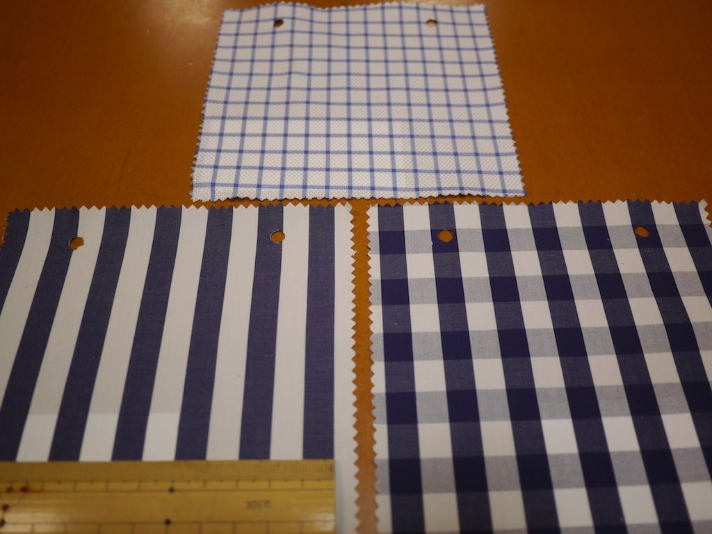 カンクリーニ社 1cm巾の紺/白ロンドンストライプ オーダーシャツ価格19000円(税込)