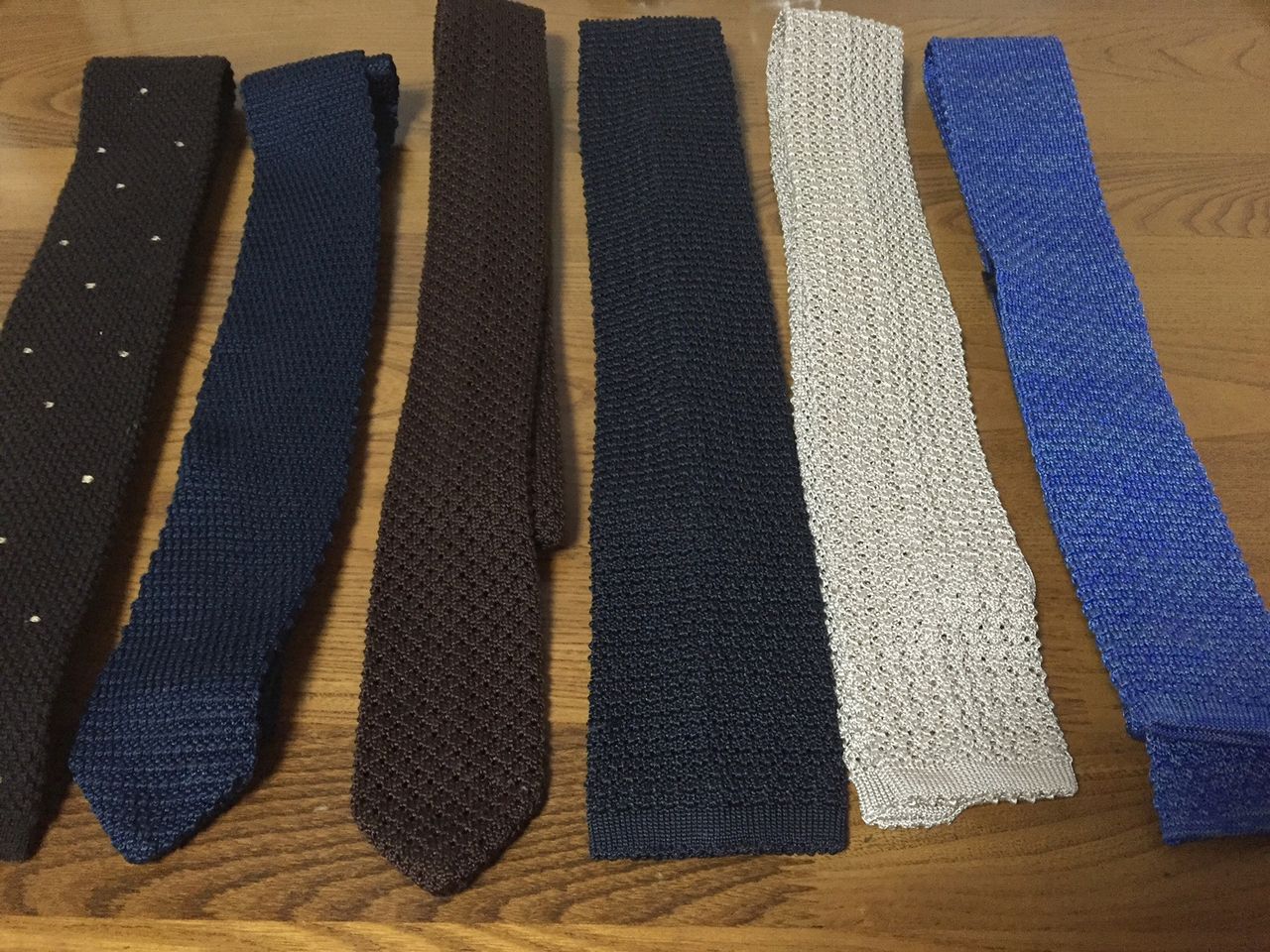 私のワードローブのなかのニットタイ。右のニ本は先日フィレンツェのリナシェンテで見つけたもの。