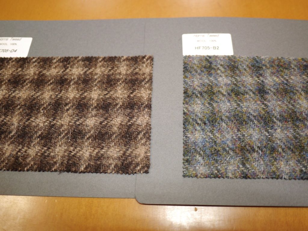 先日このブログで紹介したハリス・ツイードジャケットが人気。ブログで紹介した柄に加えて、さらにい柄が加わりました。当店に現物数点と全色揃ったサンプルをご用意しています。