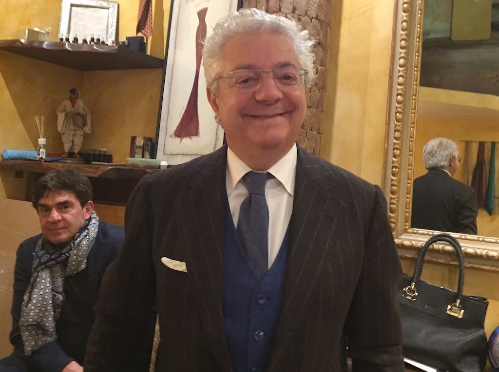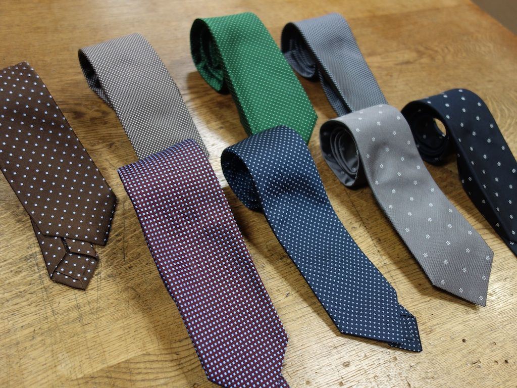 フスコ氏は現在、中東はドバイで整形医師としてバリバリ働いているという。セッテピエゲネクタイ作りは氏の第二のライフワーク。人気があるのに支店も作らずモンテナポレオーネのここ一店で扱われている。医者で当然お金持ちなのでネクタイ造りにコスト感覚ゼロ。だからしめやすくエレガントになる。商社にライセンスを売ってラクして儲けるなんてケチな考えナシ。自分と価値を共有する客と友達にだけ喜んでもらえばいいという姿勢が彼のネクタイが愛される理由。