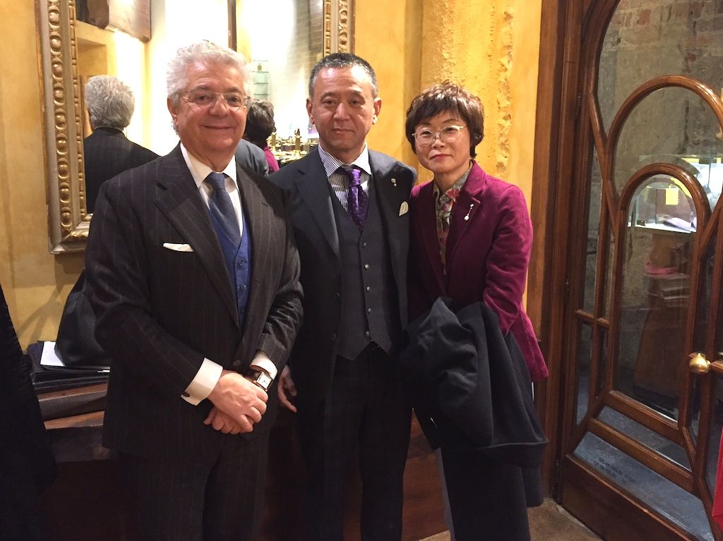ロンドンからミラノリナーテ空港に帰りホテルにチェックインした後、マンザーニ通りホテルアルマーニの前でタクシーを降りフスコの店へ。細い路地を入り店の中を見るとちょっと目を疑う。小さな店には何人か人が居てその中の一人がエレガントなスーツに身を包んだアンジェロフスコ氏。この日はコーヒー豆を使ったオブジェを店に納める日でアーティストが来ていた。入っていいですか?時間を改めましょうかと尋ねると全く問題ないとのこと。フスコ氏とは10年前にお会いしたがその頃と全く変わらないハンドメイドのクラシックなスーツに身を包んだジェントルマン。