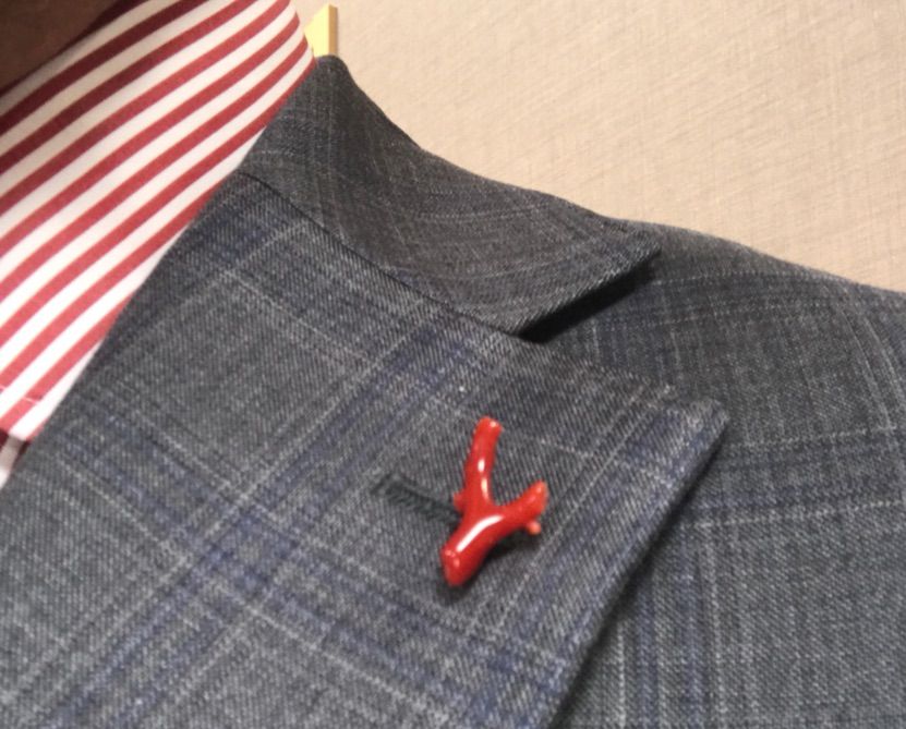 2週間前思いついて行きたい場所だったがいままで行ったことがない南国、高知にでかけた。前日までは寒かった日本がやっと春めいた日だったのでコートも着ずにジャケットだけでアーケードを歩く。日本のどこでもあるチェーン店のあいまにこの街しか無いカツオの叩きのお店などあり楽しい。アーケードの入口にふと珊瑚の専門店を見つけた。珊瑚は幾らくらいするものか知らないのでちょっとショーウインドウをのぞいてみたら思っていたよりリーズナブル。店主に聞くと土佐珊瑚といって高知は珊瑚の集散地で世界から集まりセリが行われるからだとか。ふとラペルにつけるピンバッチにいいと思い、枝ぶりのいいものを見つけ妻のネックレスと共に買ってみた。海の中の宝石とも言える珊瑚をラペルにさすとなんだか幸せな気分になってくる。どこの街のデパートの一階や空港にあるブランドショップのいかにも「価値あるもの」ではなく、その場所に行かなければ買うことができないものは実はホントに価値のあるものではないかと思えてくる。
