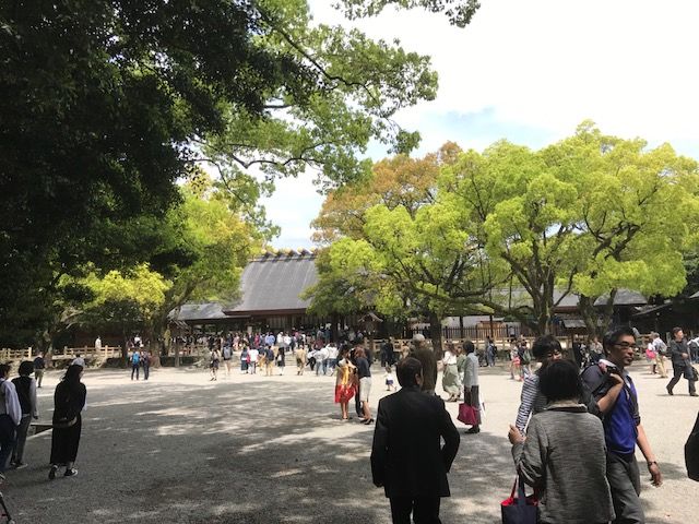 iphoneを見ると歩いたキロ数がわかって便利。家から熱田神宮までは回り道しても7キロちょっと。歩けないことはない。でも足がつかれたので熱田神宮境内の清め茶屋でところてんをいただき一休み。思い出すと名古屋で一番重要ポイントの熱田神宮だが初詣以外案外行っていないことに気がつく。それで正殿に参詣後、境内を散策する。
