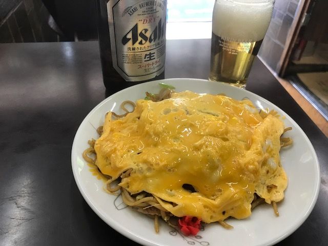 参拝を終えて神宮前駅近くのお店にとびこみやきそばで一杯。クルマじゃないのでアルコールも問題なし。休日だけにゆるされる昼飲みですねえ。