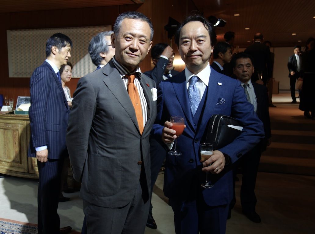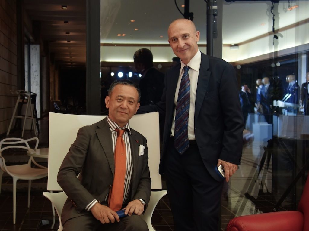 ジョルジョ駐日イタリア大使と。ちなみに私はエルメネジルド・ゼニア、クールエフェクト、ブラウンをアンコン仕立てにしたスーツを着用しました。