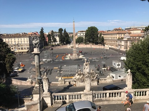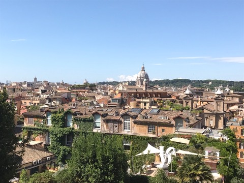 ほど上に通っていて、歩くとローマ全域のパノラマが見える。木々の間から見えるローマの街は、多くのクーポラがありとても美しい。ローマには何度も来ているが初めて歩いた道。この道はやがてポポロ広場につながる。