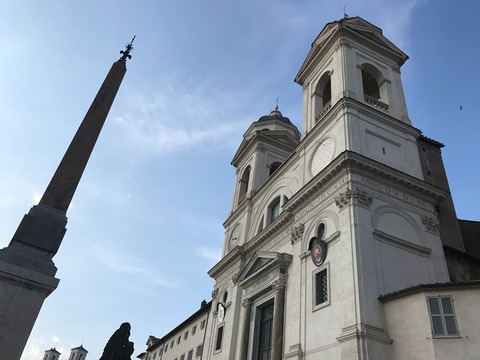 絵画館を出た後トリトーネ広場を渡りスペイン階段上のトリニタ教会へ、いつもはここからスペイン階段を降りるのだが、在伊フランス大使館でもあるヴィラメディチの方角にまっすぐ歩みを進める。この道は丘の脇か断層なのか、スペイン広場の50m