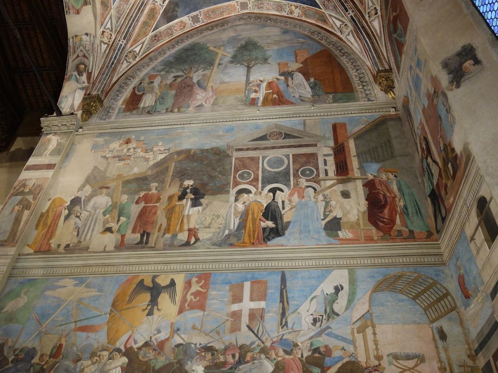 アレッツオの朝はサン・フランチェスコ教会で近年改修が完成した、ピエロデッラフランチェスカの「十字架伝説」を見て、