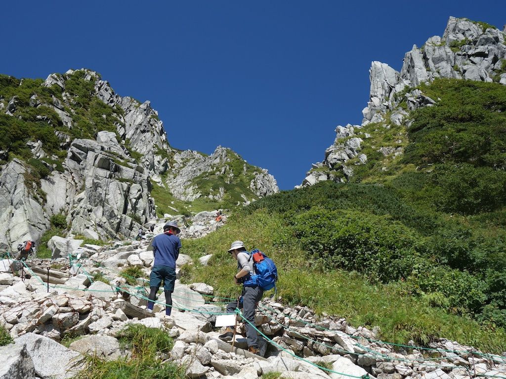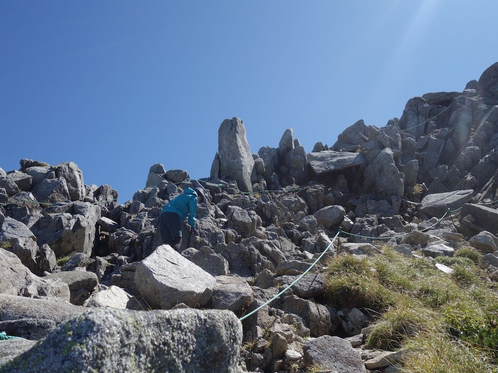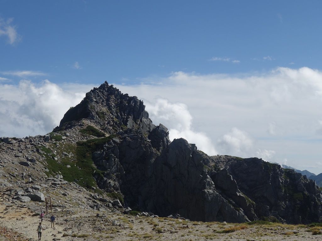 この水木は連休。最近山登りに目覚めたが休みでもお天気の日が少なくなかなか登山靴を履くことはなかったが木曜日にはやっと晴れたので遠くない木曽駒ヶ岳に登る。高速道路を駒ヶ根で下り、バスとロープウェイに乗り継いで11時に千畳敷駅に着く。そこから屏風のように開いた岩山の上を目指し登る。急な登りだがここも3度めなのでペース配分もわかって約40分で乗越浄土に着く。そこからは全く別の景色。植生も違うがむしろ下から見るより穏やかな景色でなだらかな稜線が見えすぐ近くに岩山である宝剣岳が見える。休憩もそこそこに宝剣岳を目指す。宝剣岳は決して高くないが岩場を足元を確保しながら登らなくてはいけない。高いところに恐怖心を持つ妻が登れるか心配だったがとりあえず登りはなんとか問題がなくわずかな場所しかない宝剣岳の頂点に着いた。しかし帰りでは不安で声もでていたが励ましながらなんとか下山。妻の顔には恐怖の色がありあり。