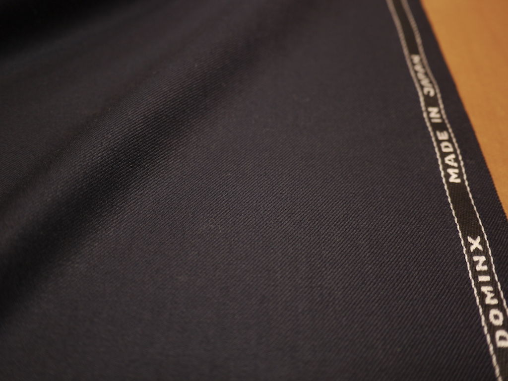 入荷したのは一宮市で古くから毛織物を製造する葛利毛織で作られた秋冬のスタンダードなウーステッド、ドミンクス、ネイビーブルー無地。葛利毛織は古式ゆかしいションヘル織機でゆっくり丁寧に織っていることでも知られています。