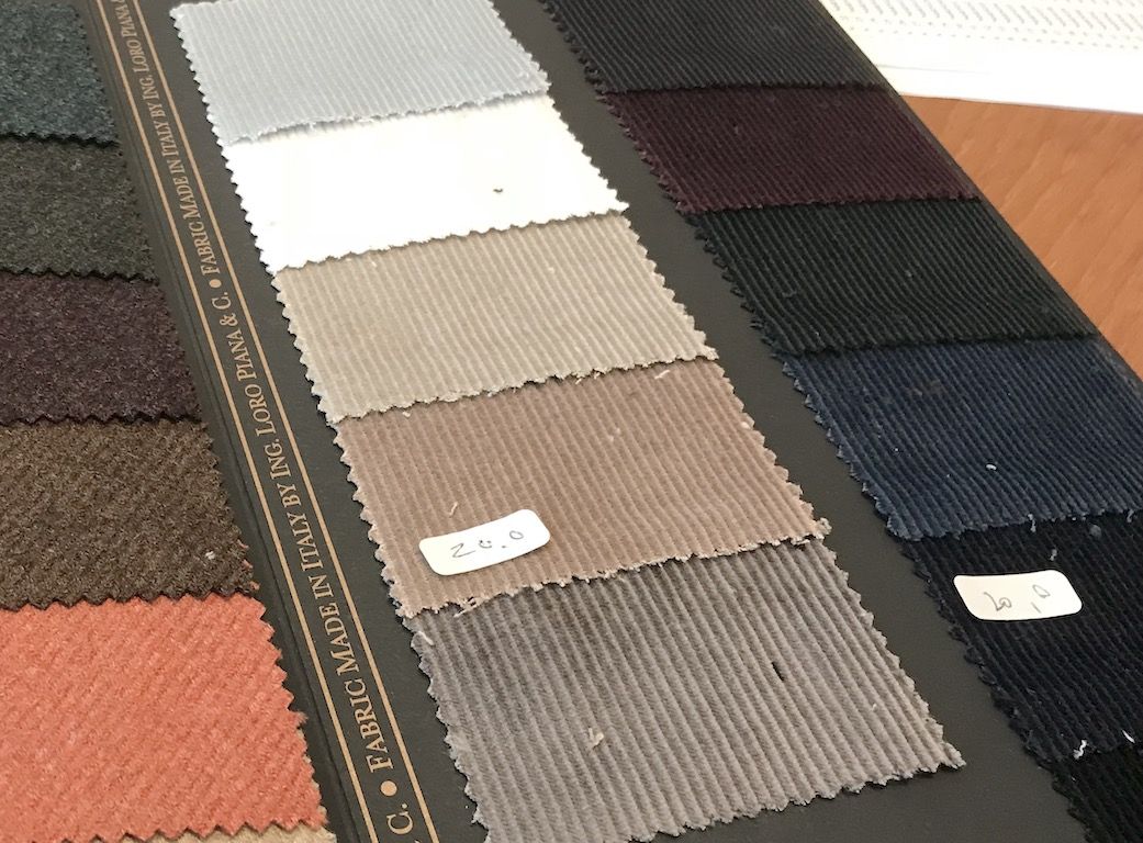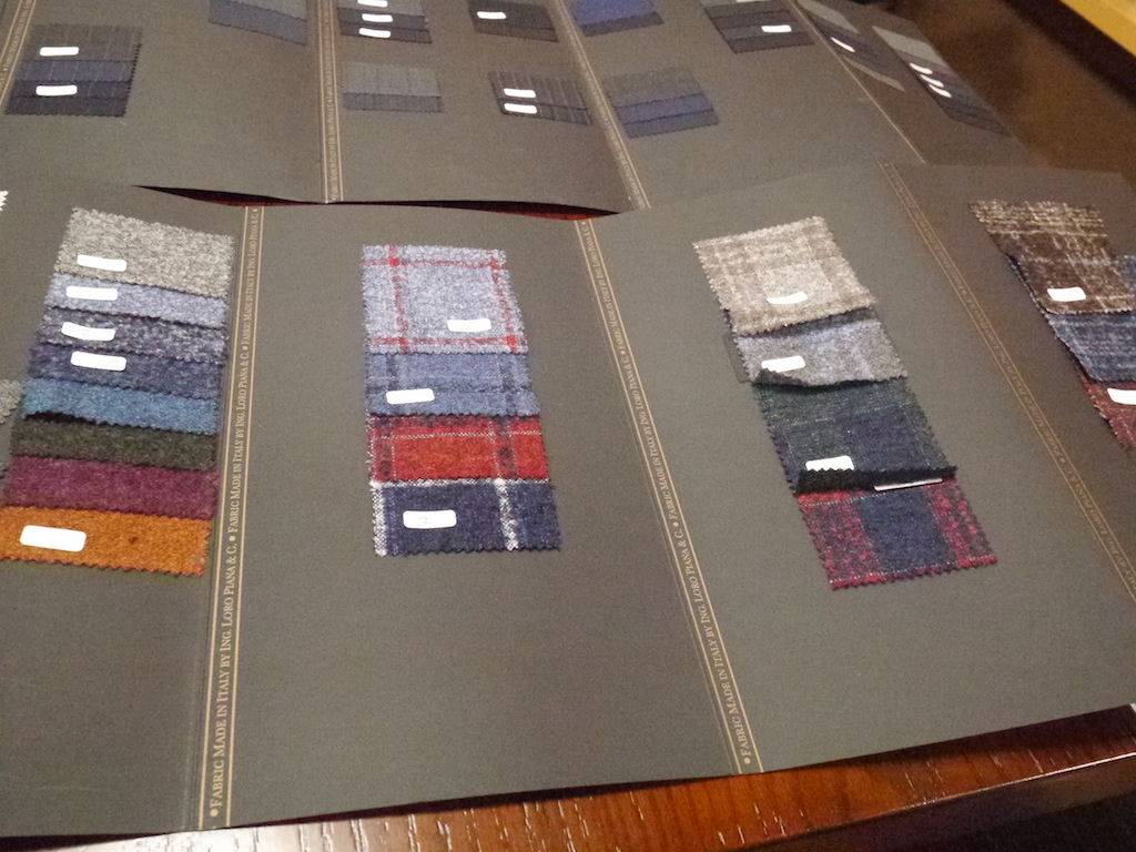 まずロロピアーナ社が秋冬用としてテーラーなどオーダーマーケット用に発売する素材をウインタータスマニアン150、タスマニアン150、カシミアウィシュ、エレガンツァ、ペコラネラ、プロポステなどすべて目を通します。その中で当店のお客さまがスーツ、ジャケットでのオシャレを楽しめそうな素材を選びます。1月のピッティイマジネウォモで見たスーツ、ジャケットの傾向なども参考にします。一軒のテーラーとしてはロロピアーナ社の素材を日本最大級買い付ける当店ですから時間はかかります。午後5時頃から始め、すべて買い付けが完了したのは午後8時半、おかげさまで昨年以上の数量を買いつけることができました。すべて完了したらロロピアーナスタッフもわれわれ夫婦もへとへとでした。そして一晩経過して、朝起きてもう少し追加したほうがいいと考え、ロロピアーナスタッフに再び会って追加の素材を選びました。
