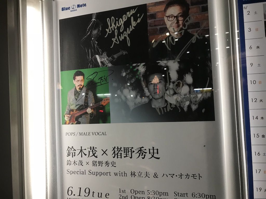 イタリアから帰ってきて次の日ではキツイかなと思ったがわがギターヒーロー鈴木茂と猪野秀史が近所の名古屋ブルーノートに来た。ならばいかにサッカーのワールドカップの日本戦があれど我はブルーノートに。